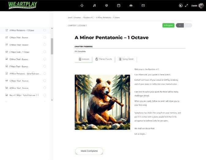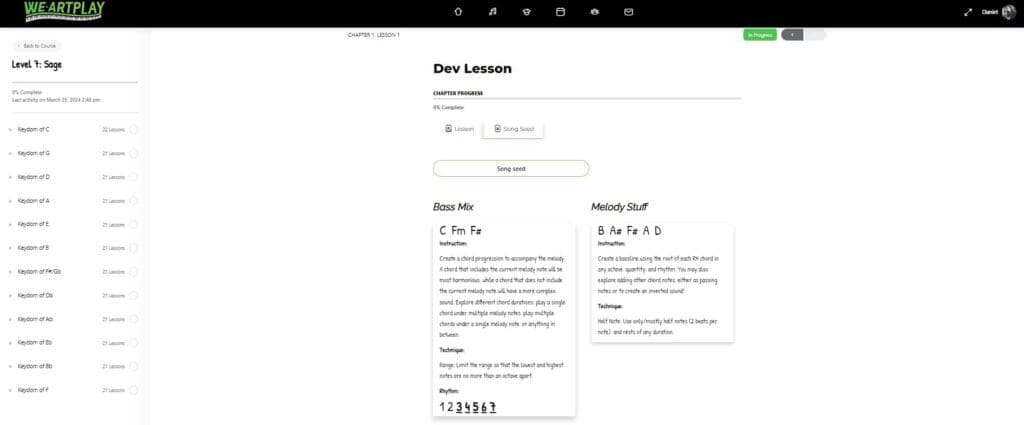 – An “open world” mechanic where students can create their custom practice routines, based on instructor recommendations or completely new based on the students interests.