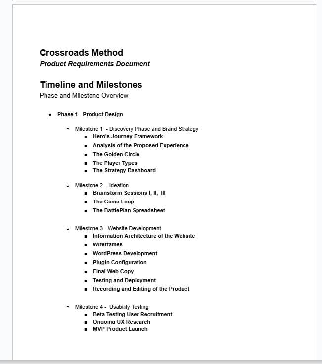All of the brainstorming and ideation concepts were moved to the Battleplan Spreadsheet a master document used in the Octalysis Framework as a way to initate the foundation of a roadmap to organize feature ideas, reward systems, desired actions, and triggers.